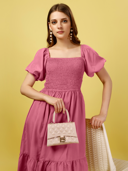 Crepe Casual Smocked Midi Dress - Baby Pink