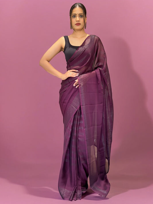 Organza Saree with Zari Border - Wine