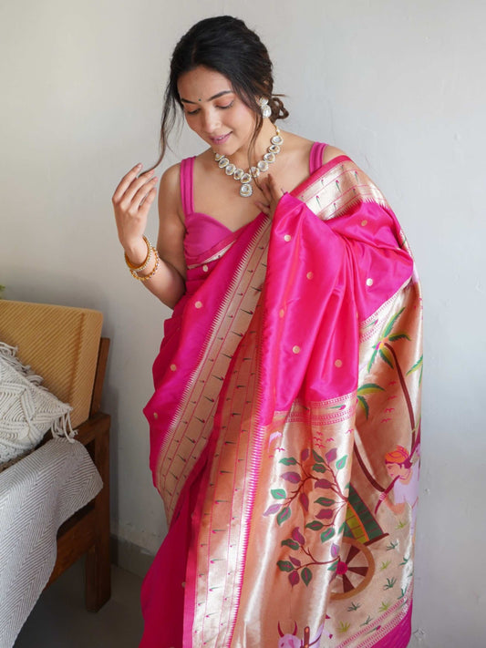-71% OFF -71% OFFPaithani Silk Saree with Lace - PinkRegular price Rs. 1,600.00Regular priceUnit price perRs. 5,600.00Sale price Rs. 1,600.00-71% OFF