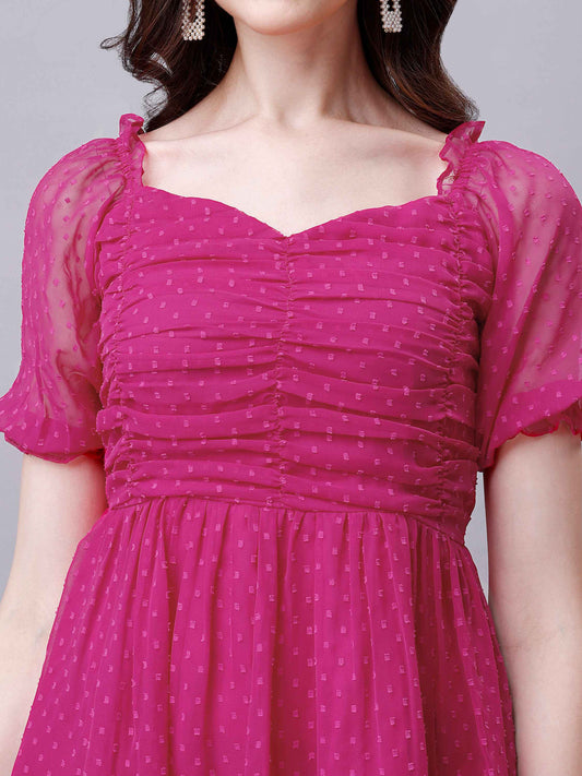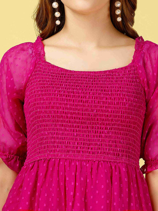 Crepe Balloon Sleeve Smocked Top - Maroon