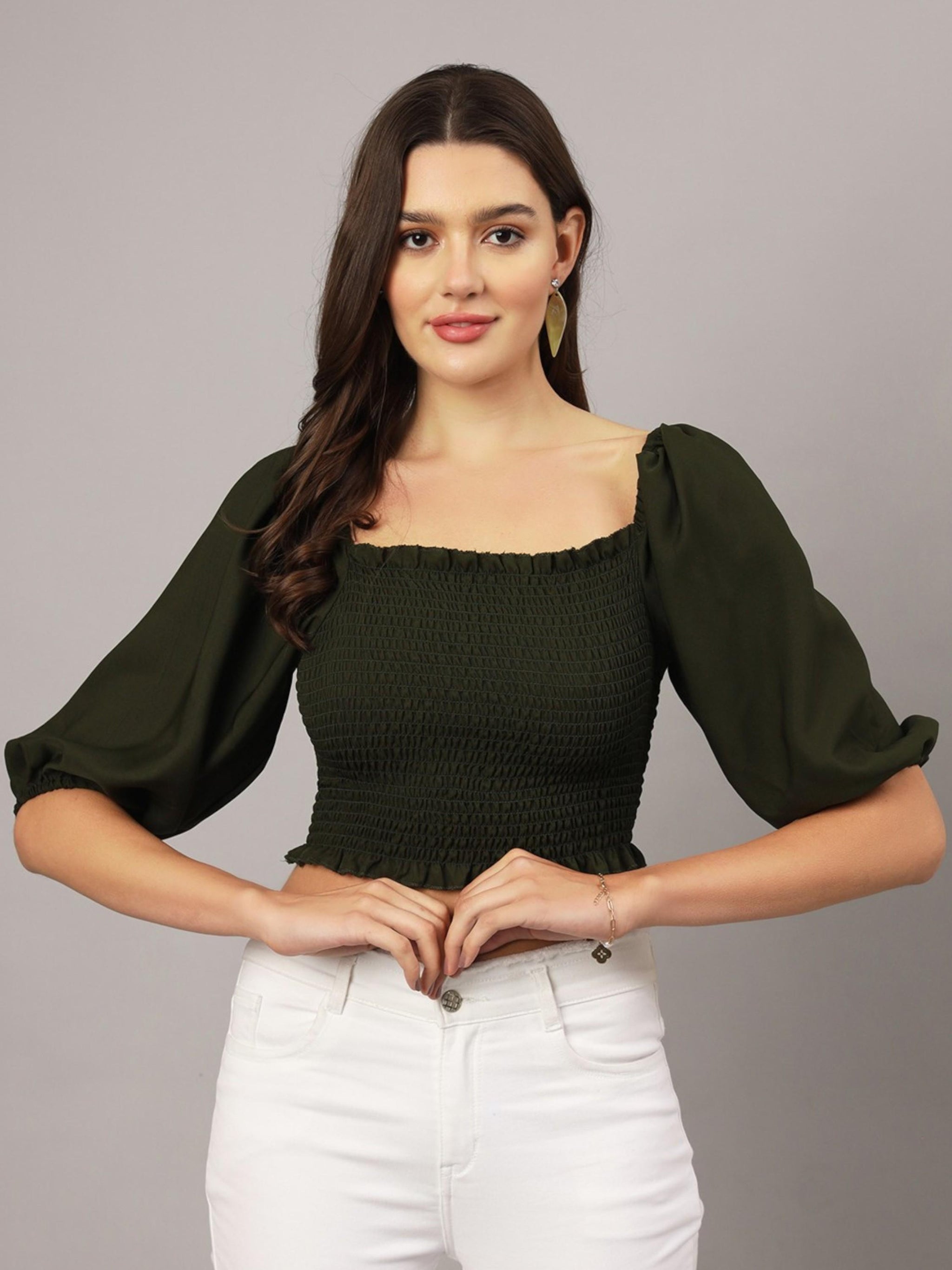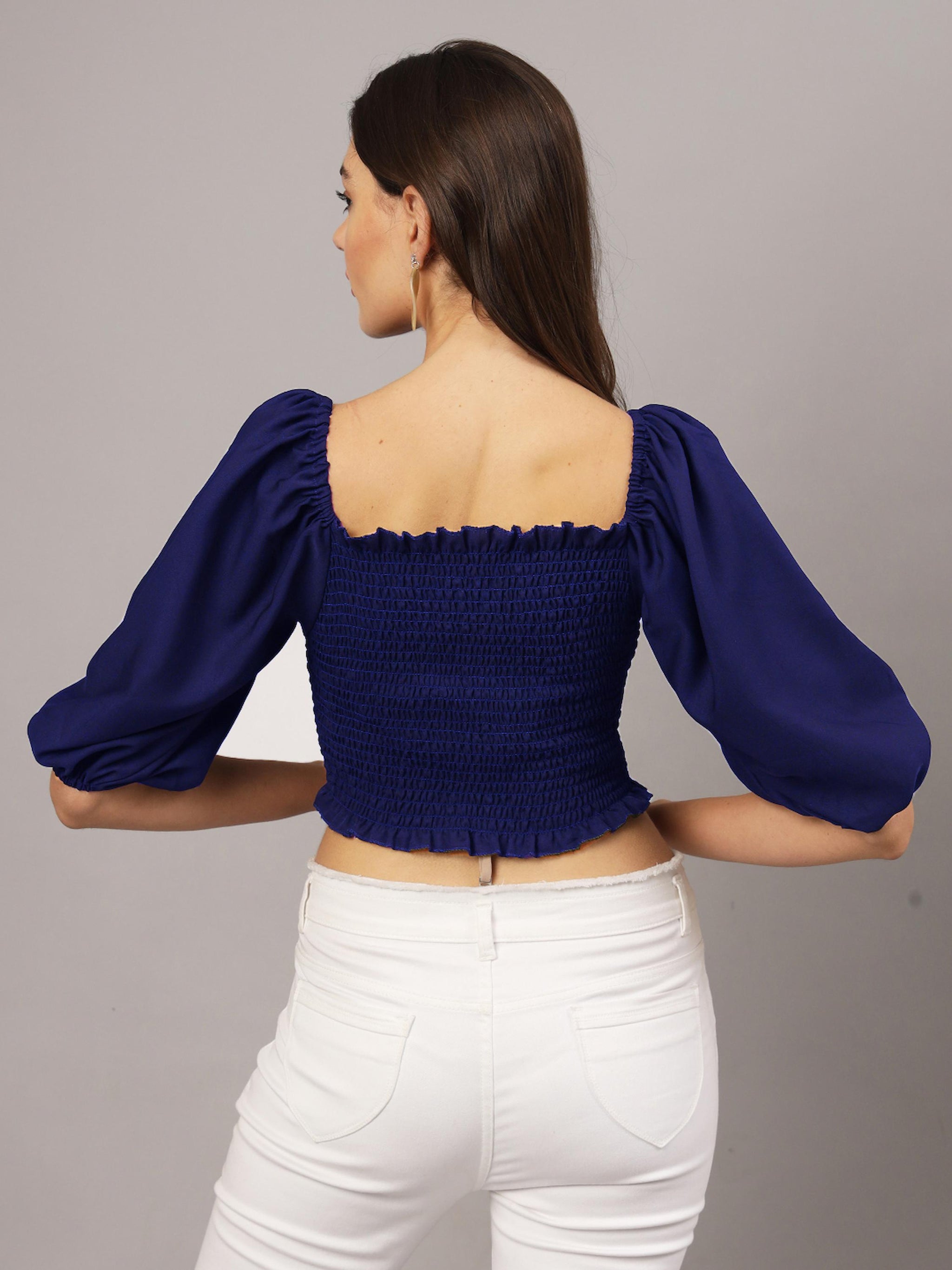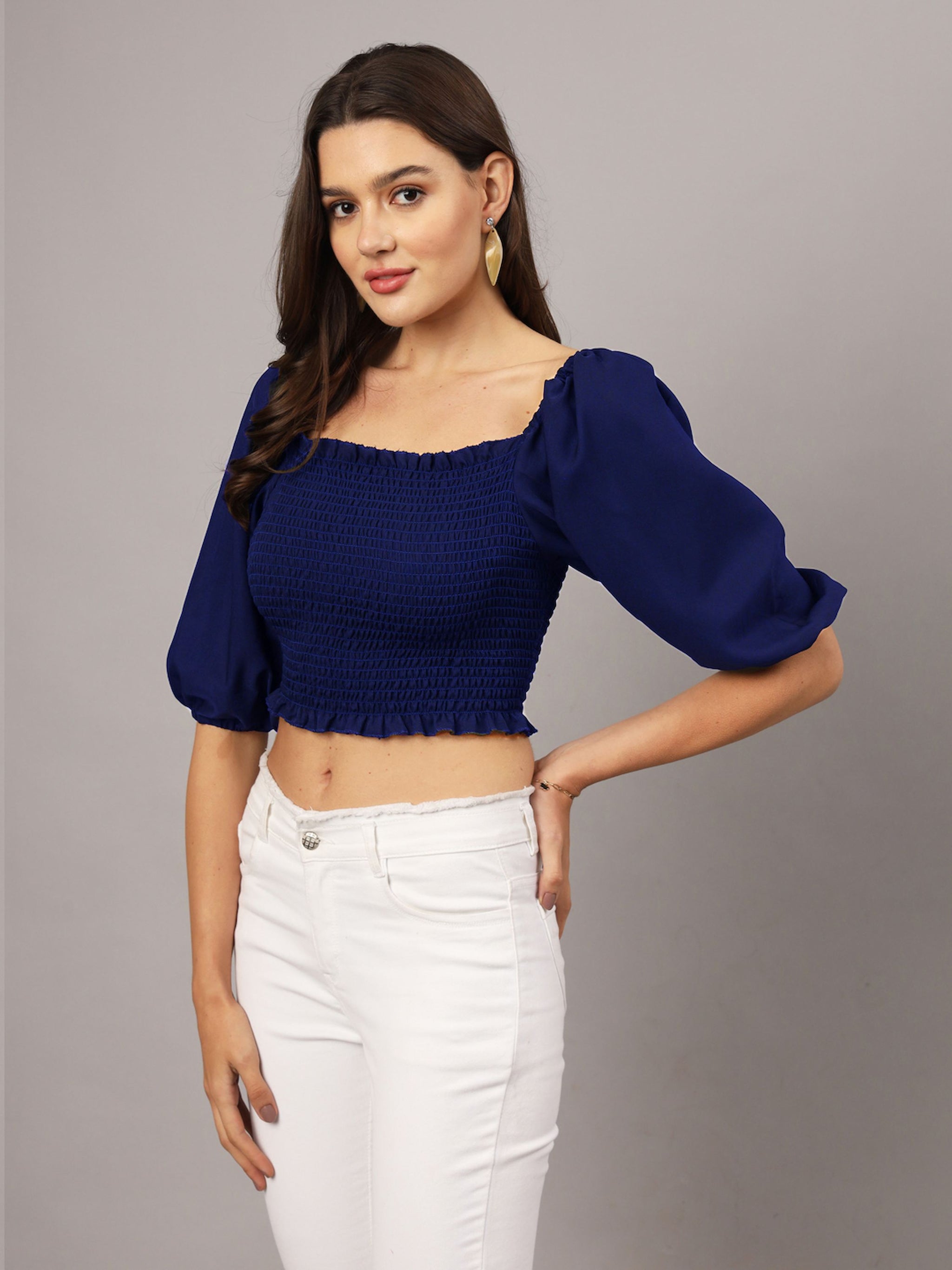 Smocked Top with balloon sleeve and ruffles is all you need for any occasions. It can be styled for western wear outfit or can used as saree blouse. Perfect fit