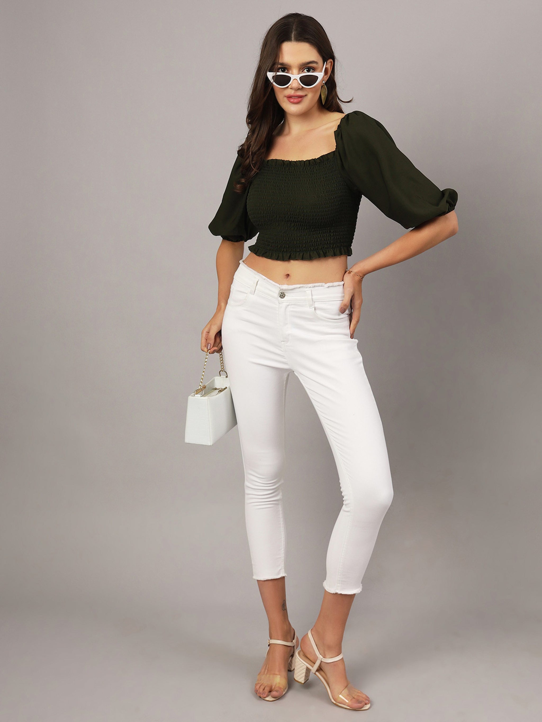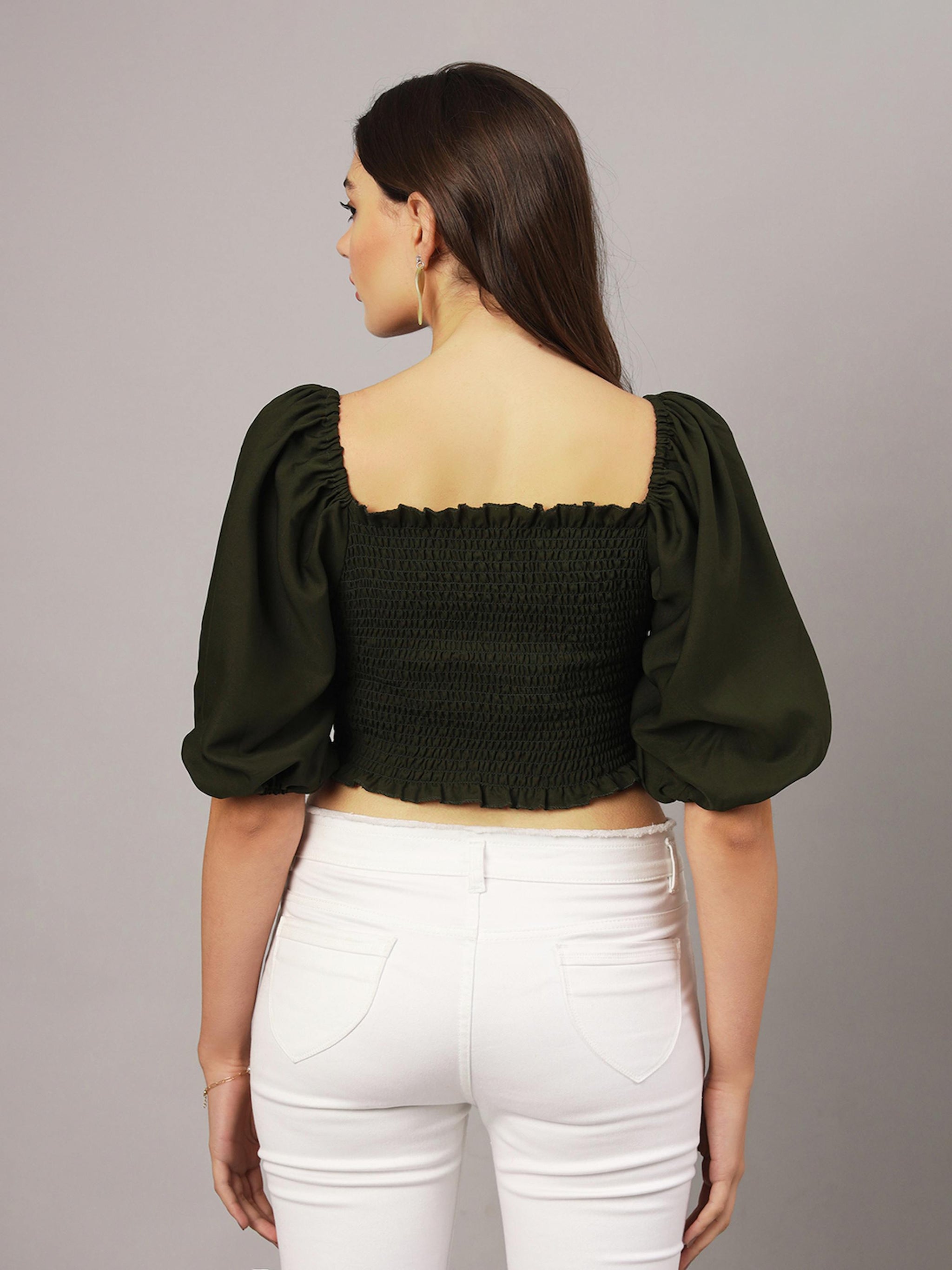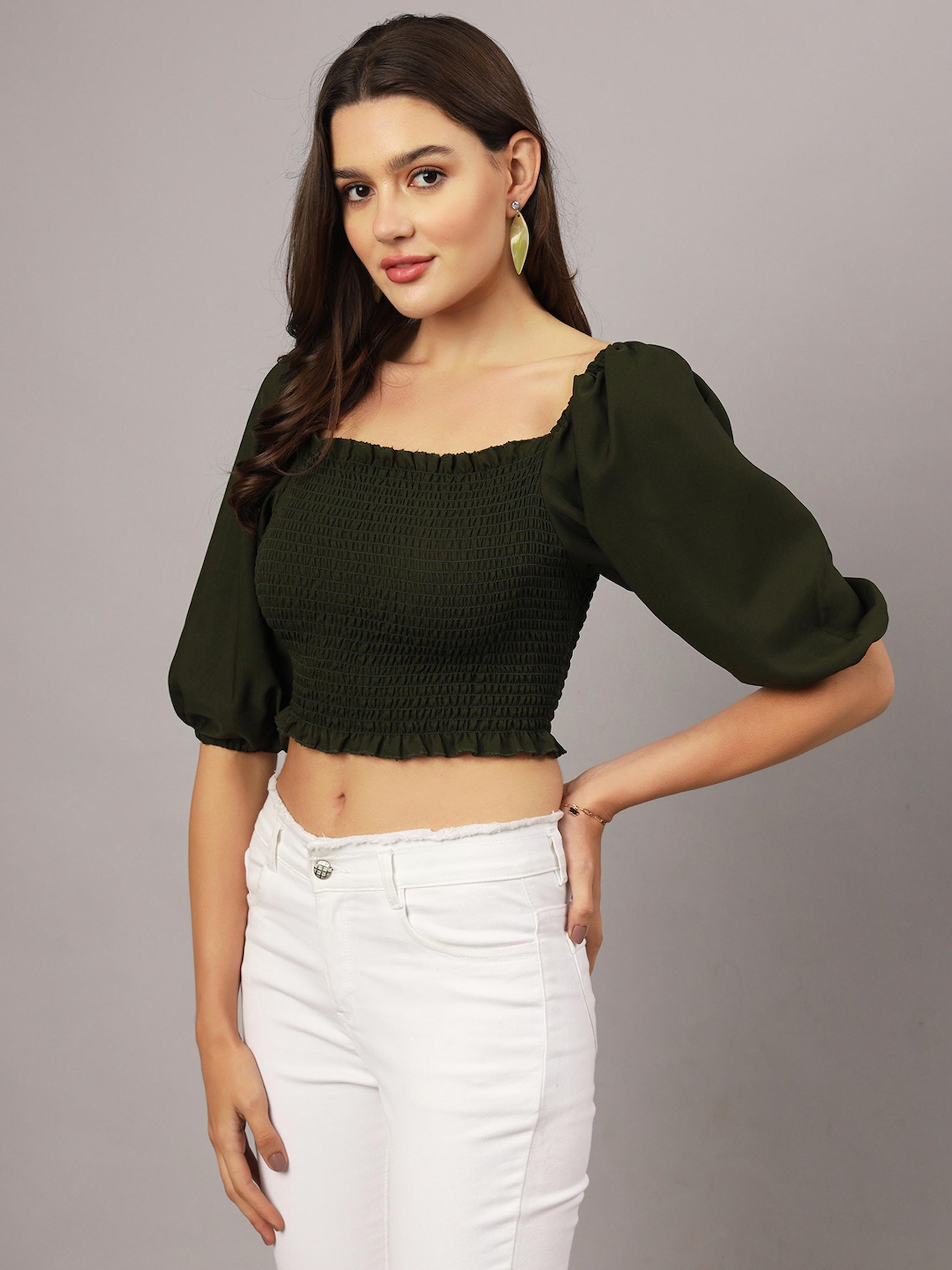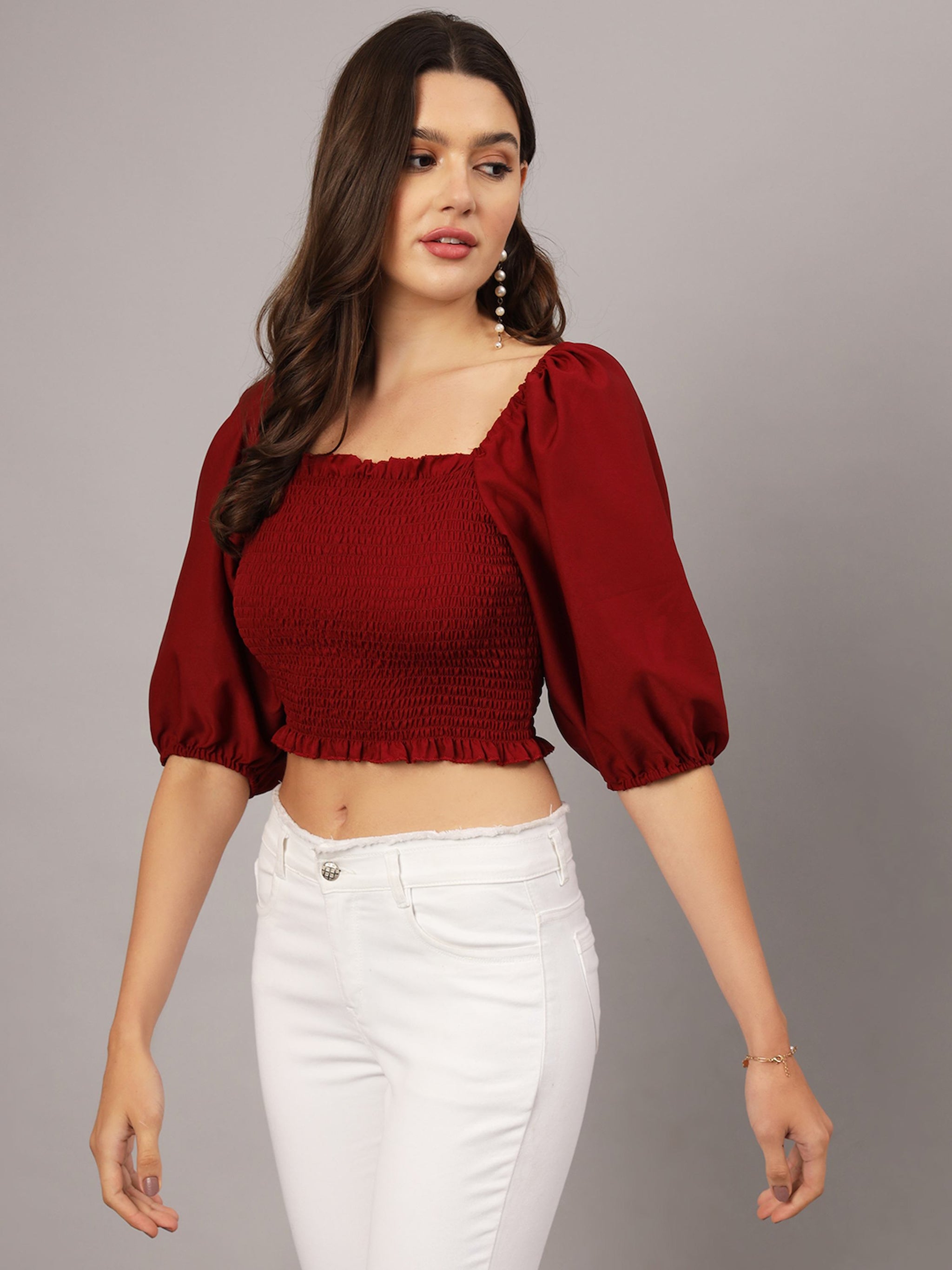 Smocked Top with balloon sleeve and ruffles is all you need for any occasions. It can be styled for western wear outfit or can used as saree blouse. Perfect fit