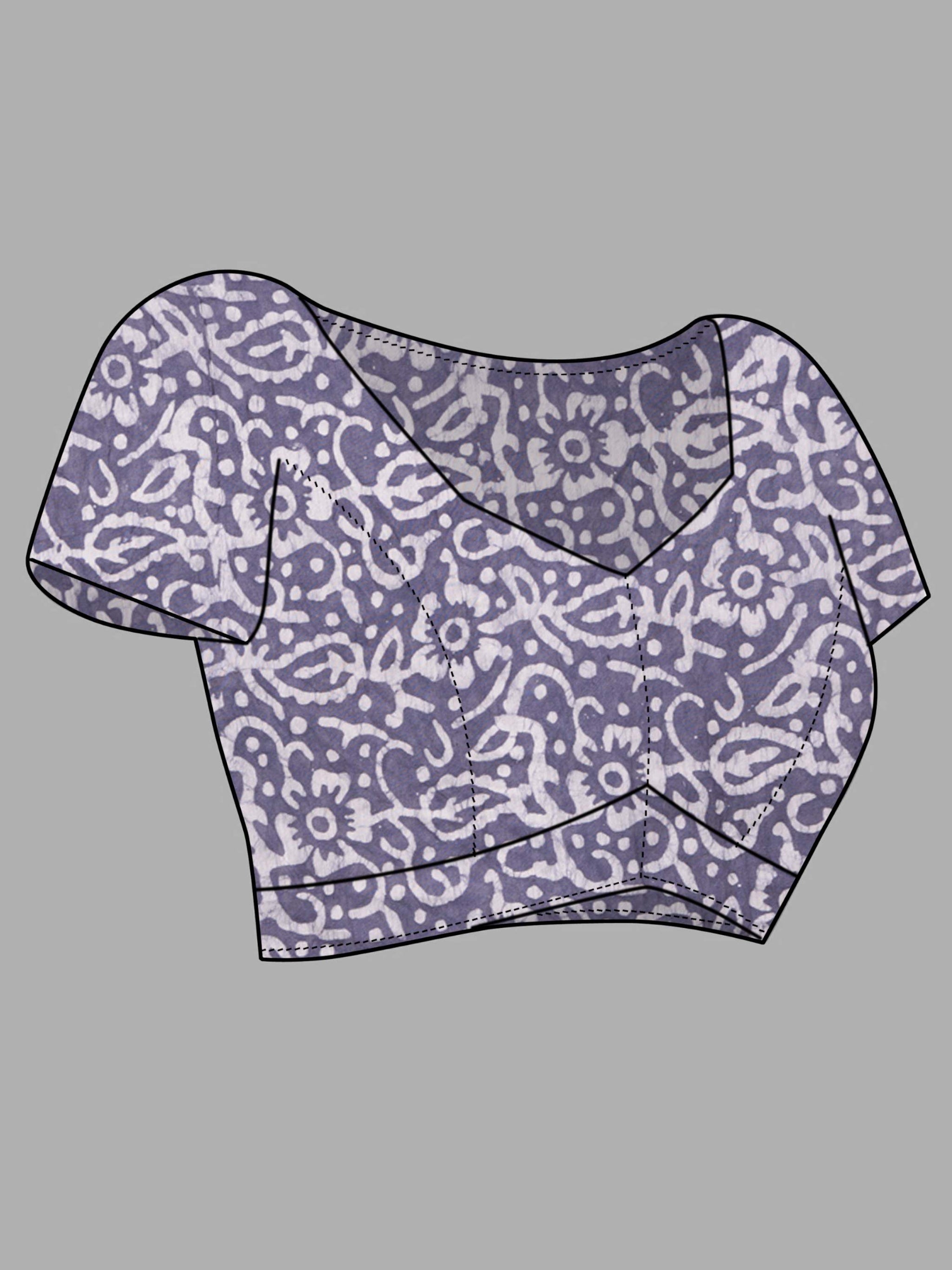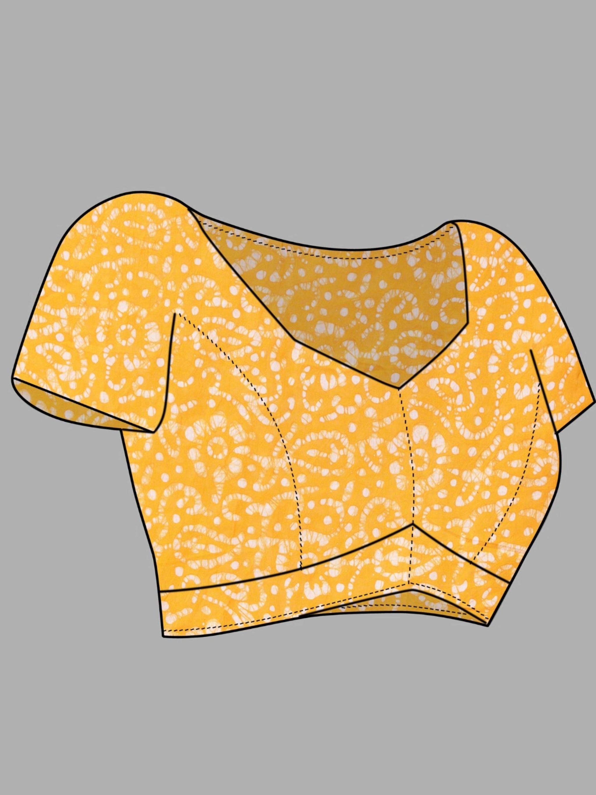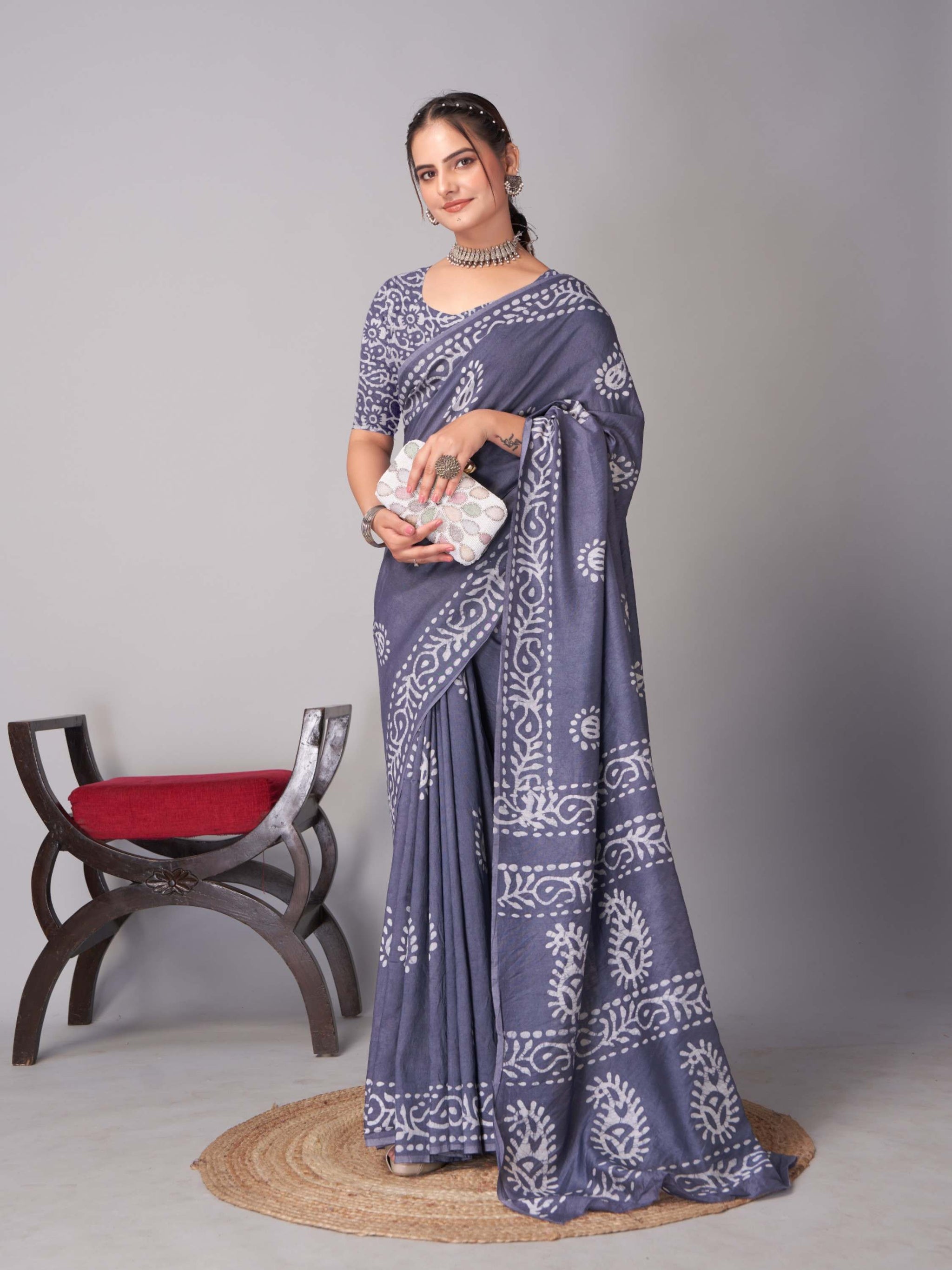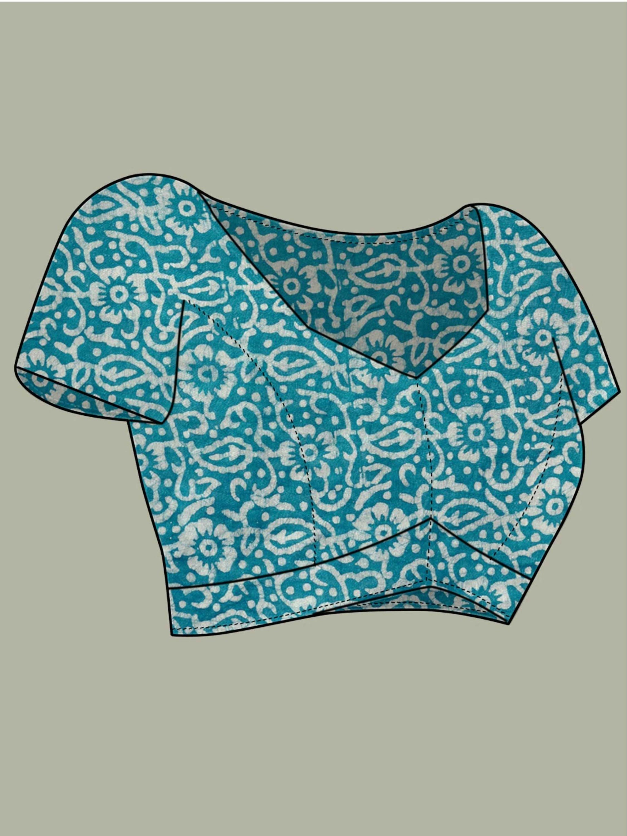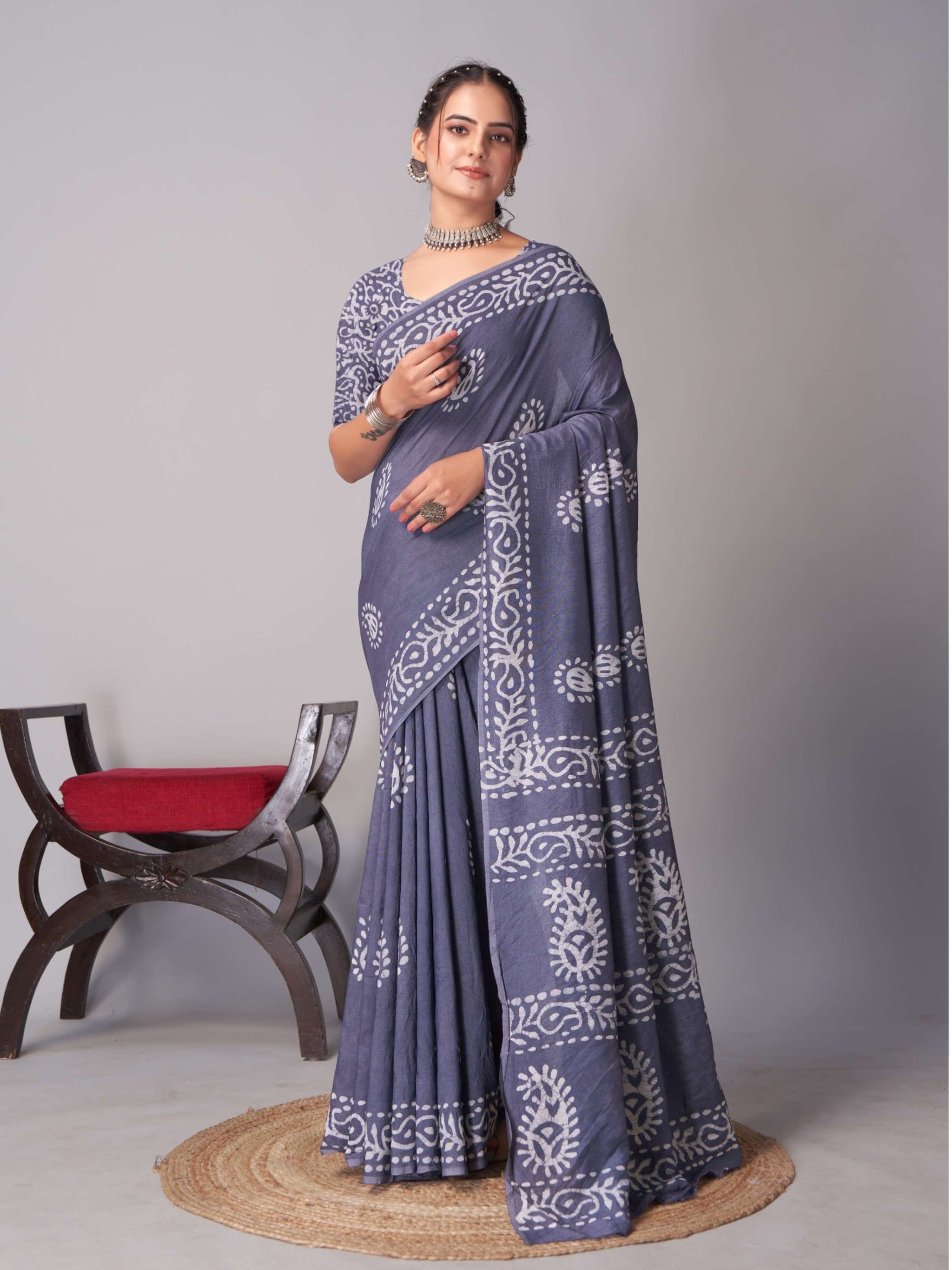 Hand-dyed Chanderi Cotton Saree with batik paisley print, printed border, and unstitched blouse. Perfect for daily and festive wear. Buy online now!