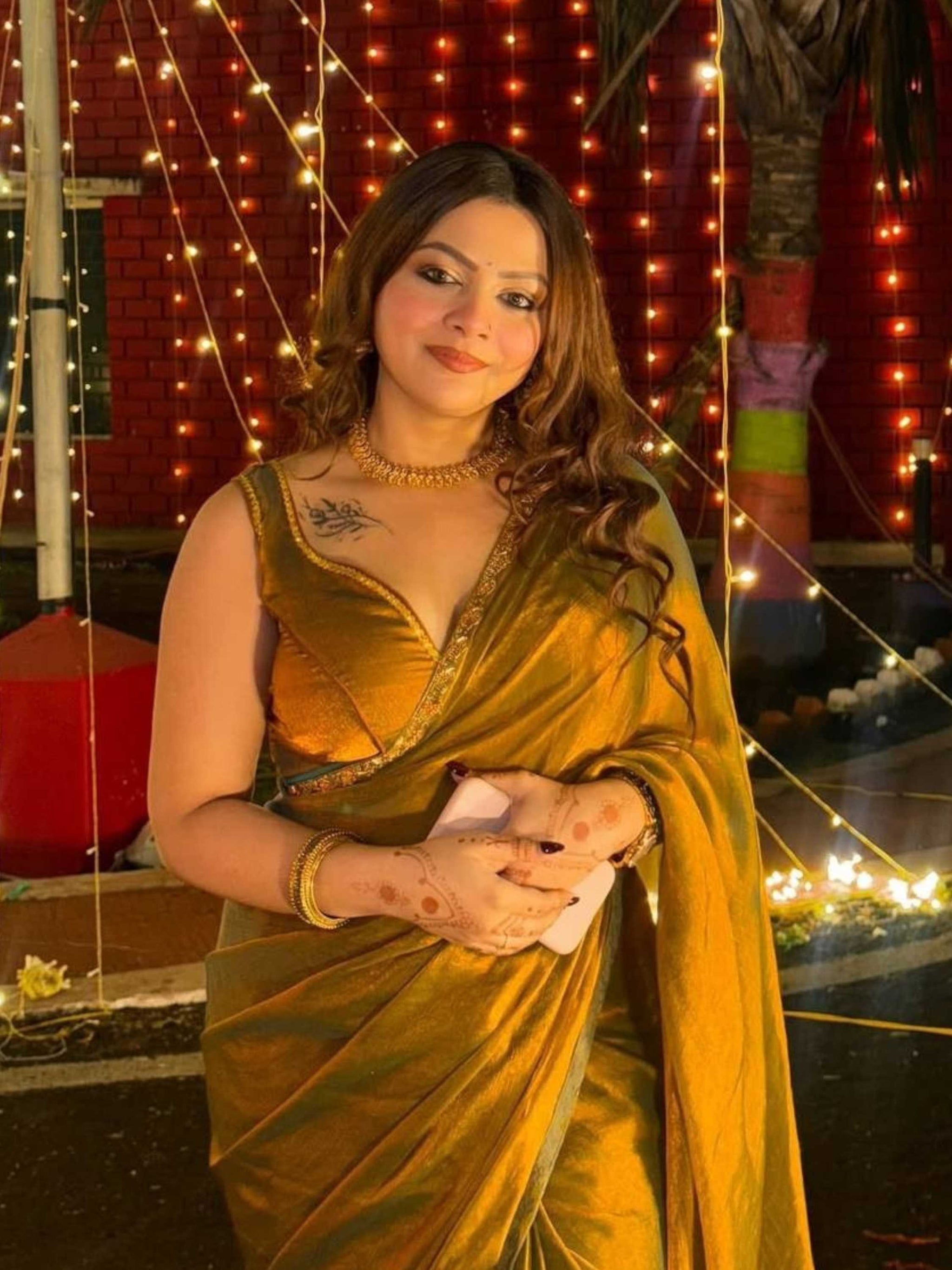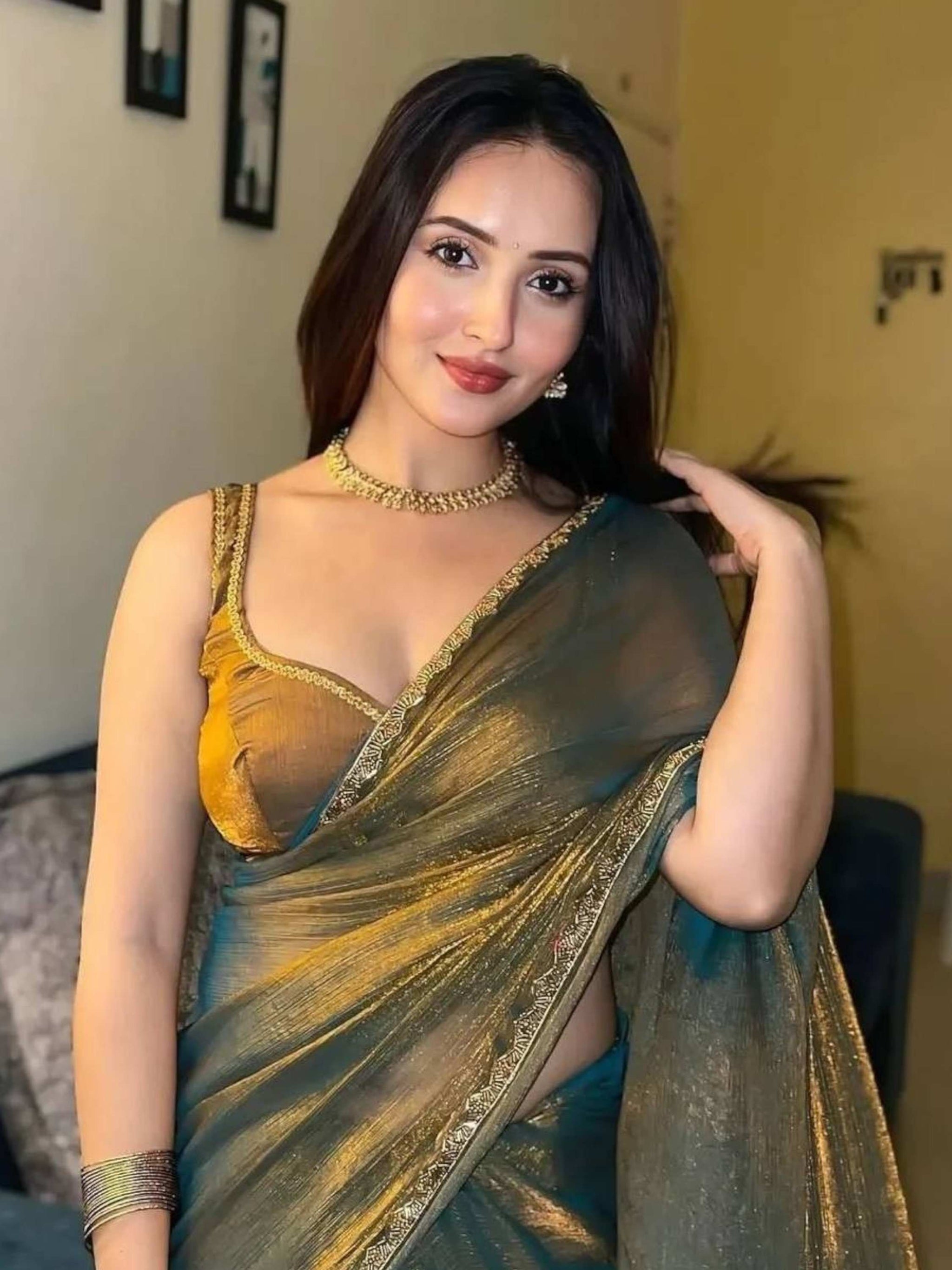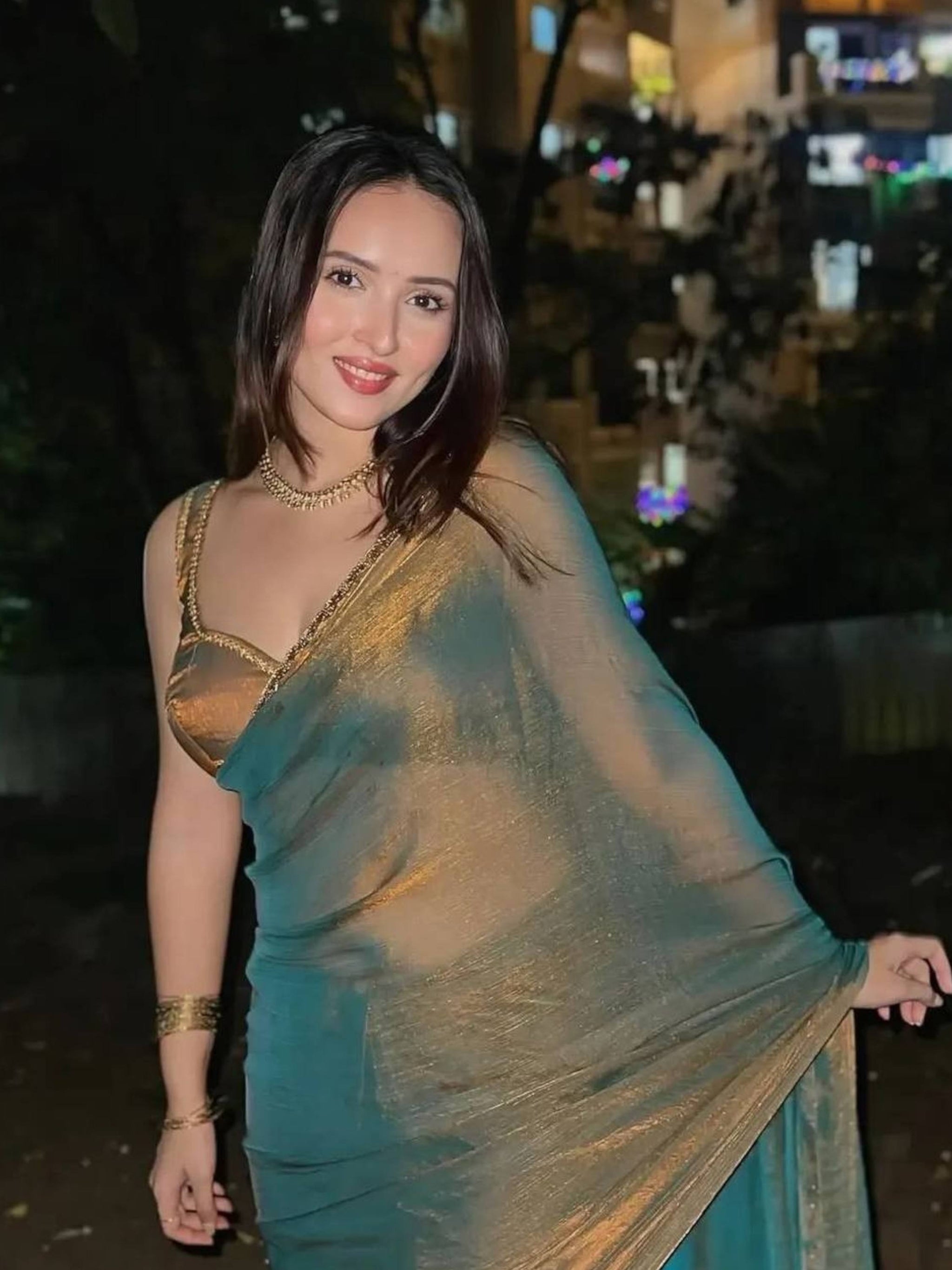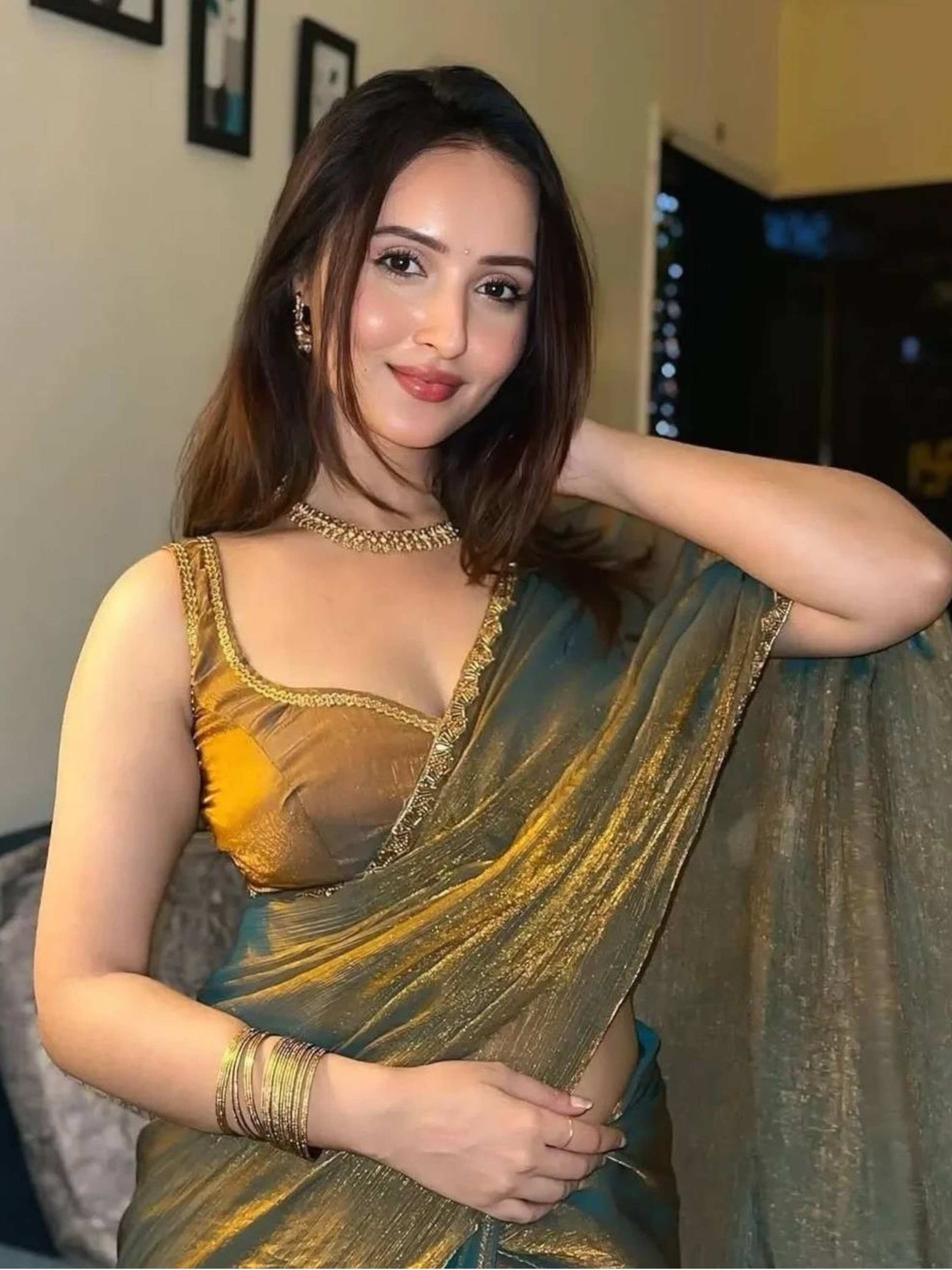 Shine in this fendy chiffon Two Tone Saree featuring a solid look with hand-embroidered border and matching unstitched blouse. Wedding Wear Saree!