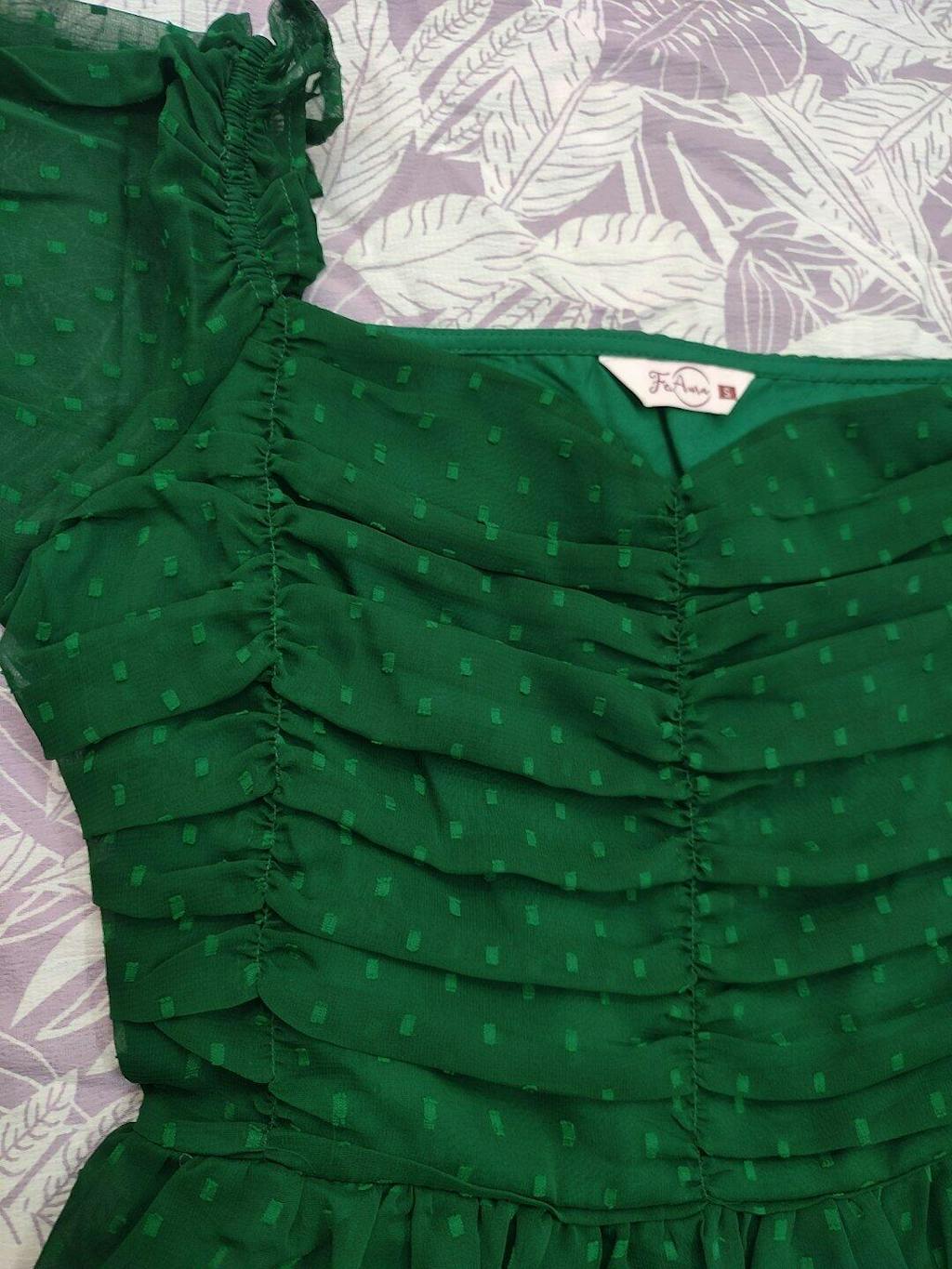 Chiffon Western Dress has sweetheart neckline, short ruffled sleeves, POCKETS, 2 layer gathers with adjustable elastic at back. This party dress has midi length