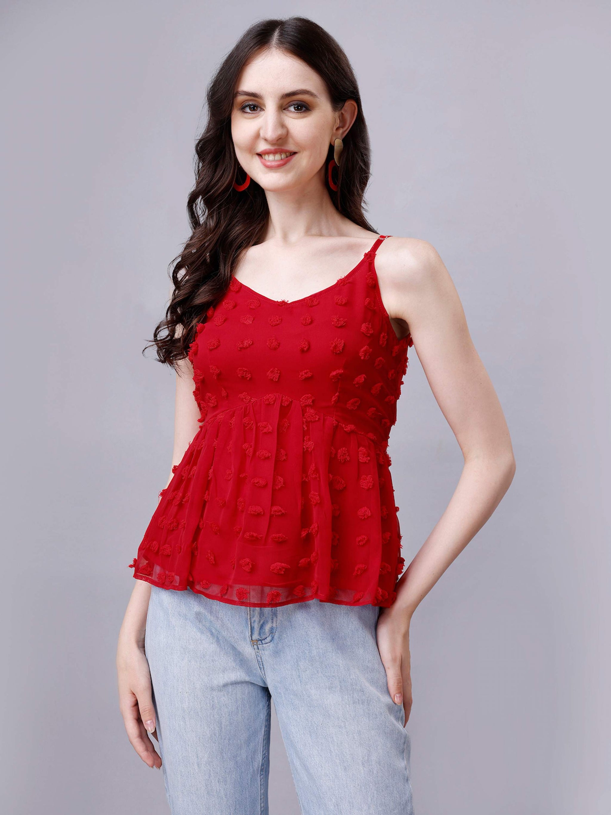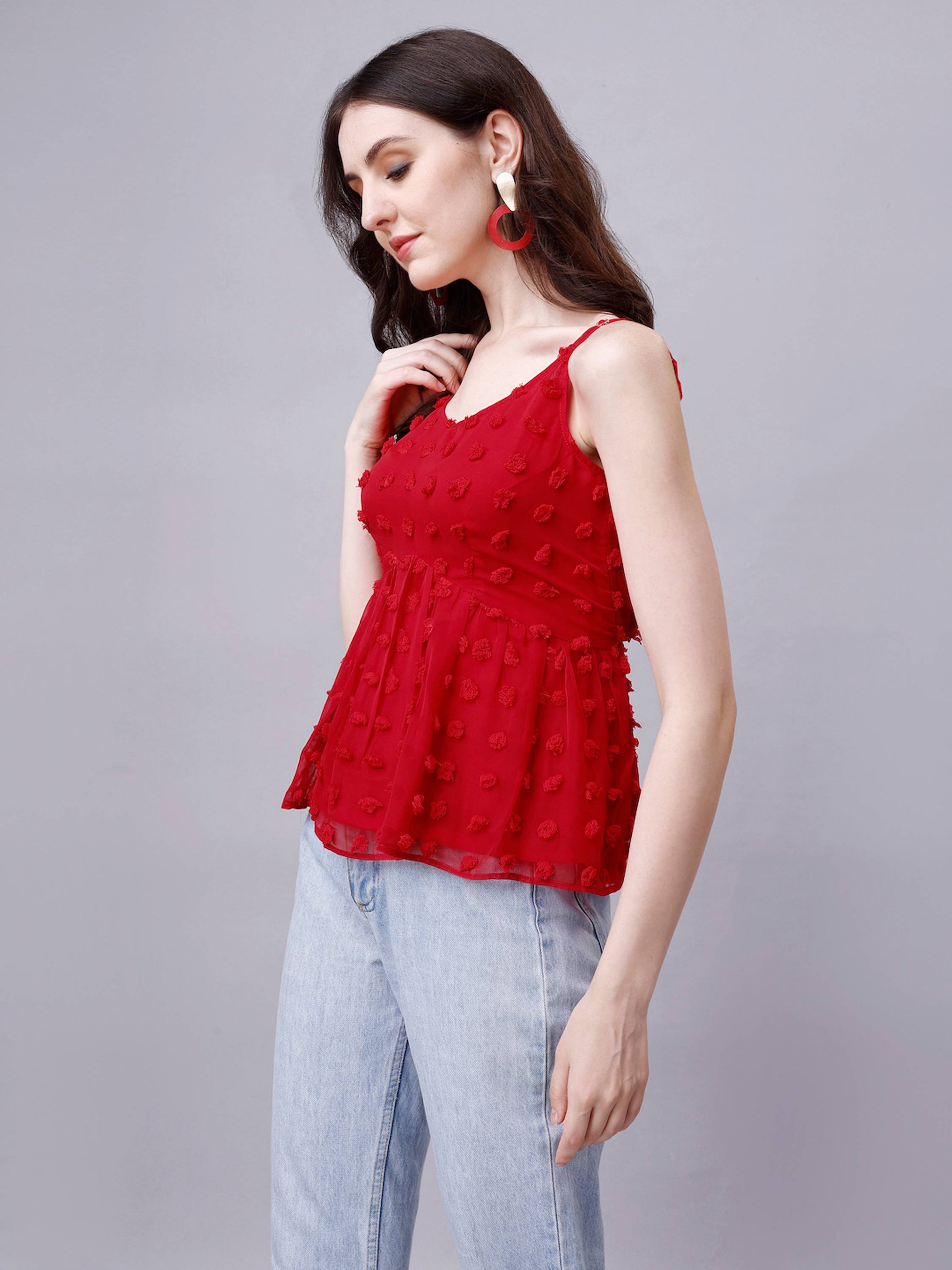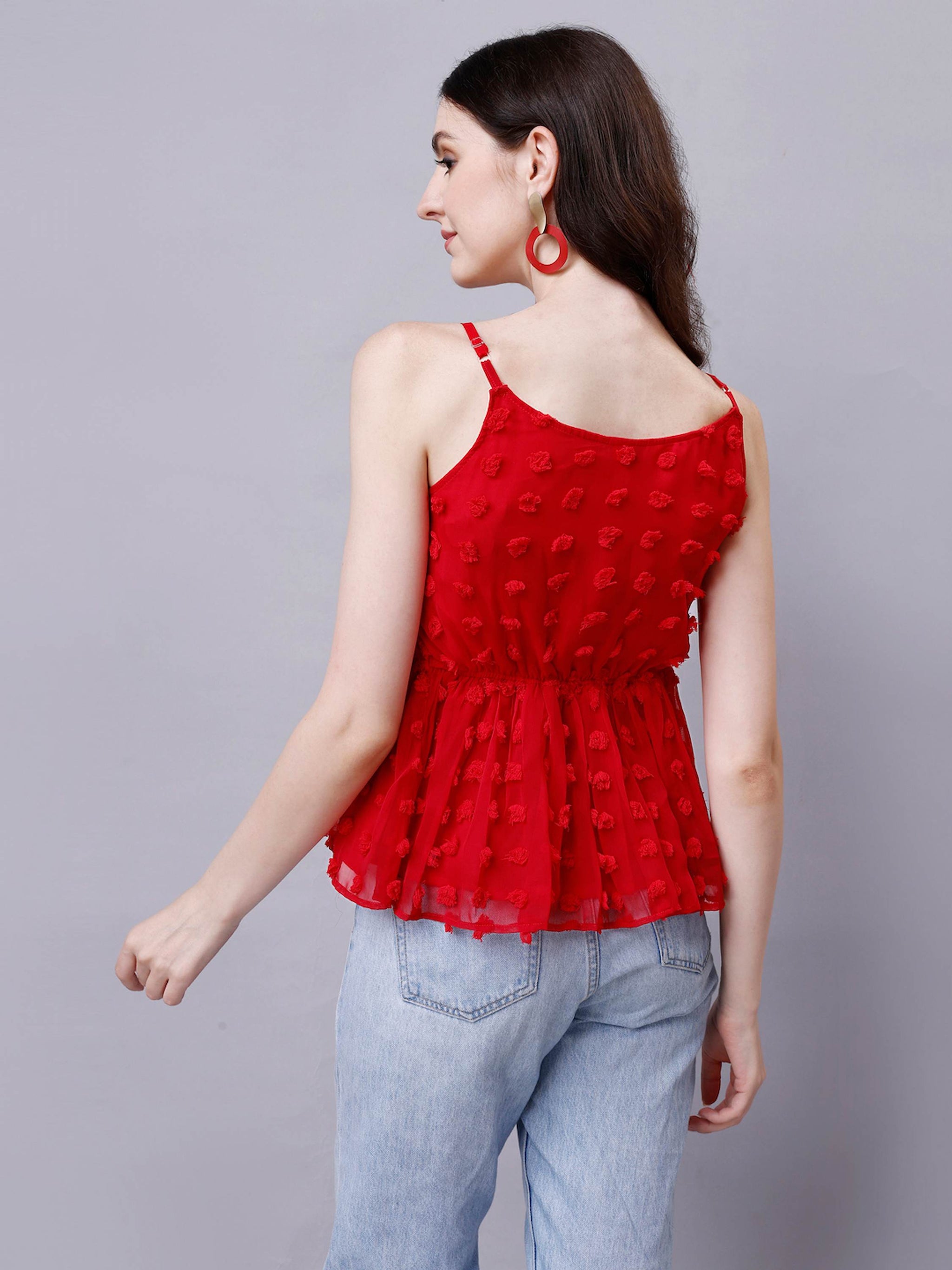 Peplum Top with adjustable strap and elastic at back. This cute top is perfect for summer, Valentine Day, Christmas day, or any casual occasion. Red and Yellow